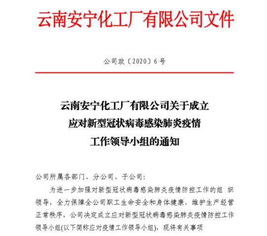 1月28日,公司成立應(yīng)對新型冠狀病毒感染肺炎疫情,工作領(lǐng)導(dǎo)小組。