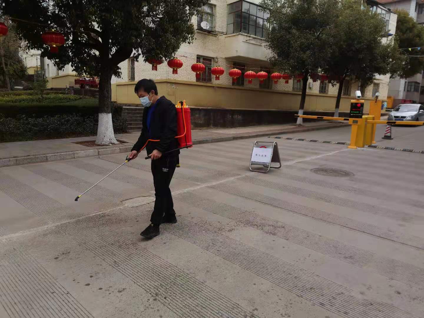 自1月29日起,后勤管理部每日對集貿(mào)市場、各值班守衛(wèi)門房進行消毒。