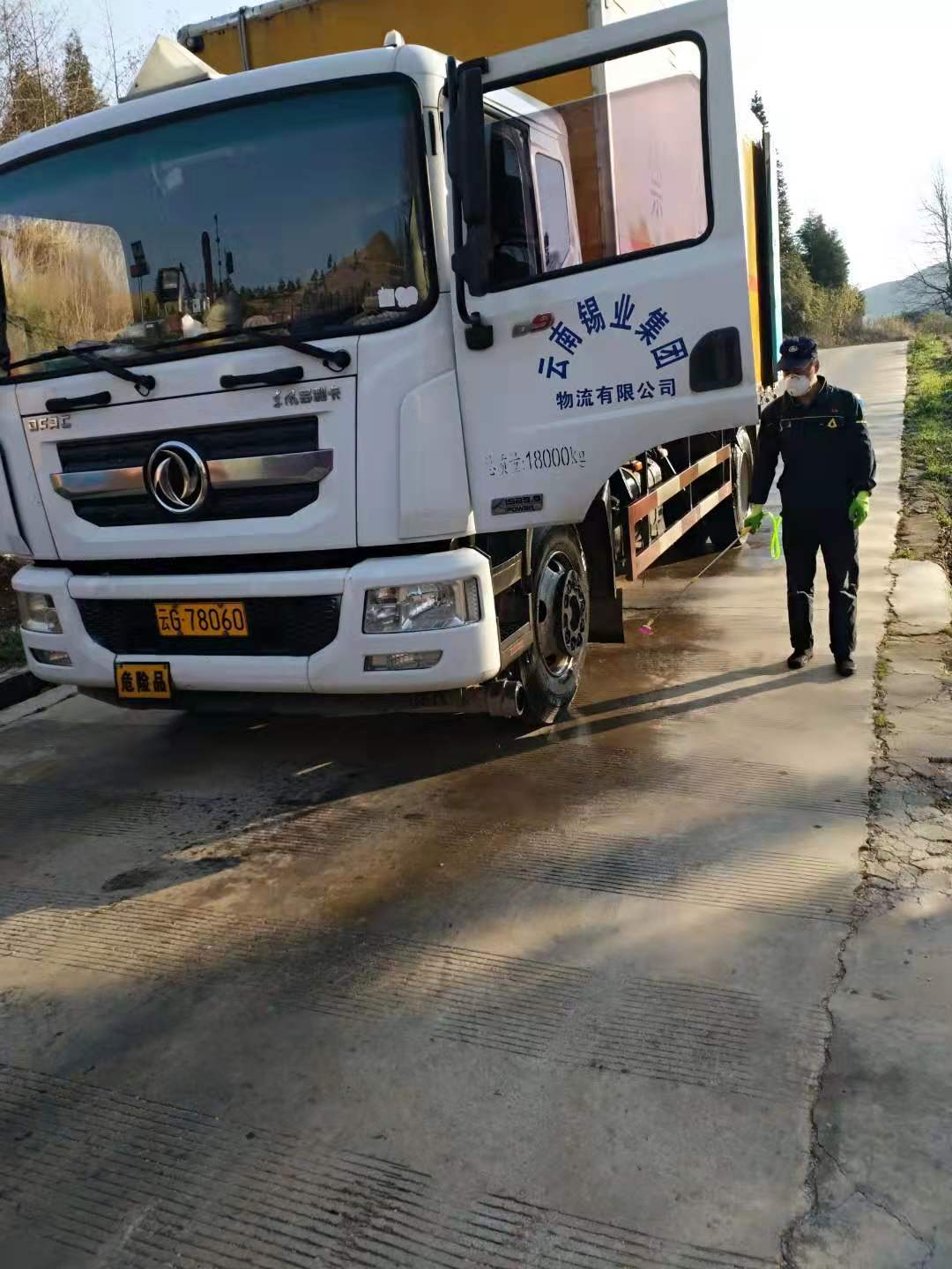 五八一公司對通勤車輛和危貨車輛進行消毒。