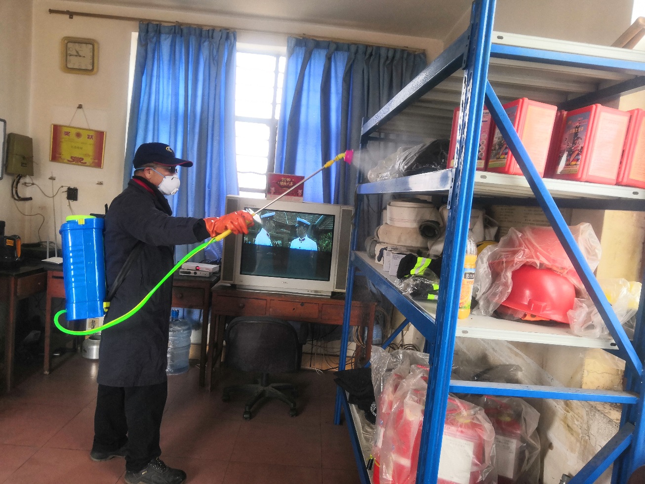 每天早上8:30分,“滋滋滋……”的聲響總是在安化五八一公司辦公樓的走道里準時響起,聽到這個聲響就知道,董雄偉來了。沒錯,這就是消毒噴灑器噴灑消毒液的聲音,這個聲音從疫情防控工作開展以來一個多月的時間,成為了董雄偉的“標準暗號”。