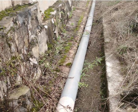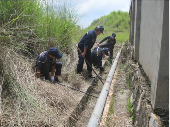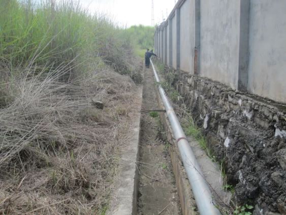 8月8日上午12:15,武定分公司安全質(zhì)量與技術(shù)設(shè)備科接到總庫區(qū)保衛(wèi)執(zhí)勤人員報(bào)告:604號(hào)庫斜對(duì)面圍墻腳約50米消防管道(DN200mm)滑落排水溝中,有斷裂、漏水的風(fēng)險(xiǎn),需及時(shí)處理。