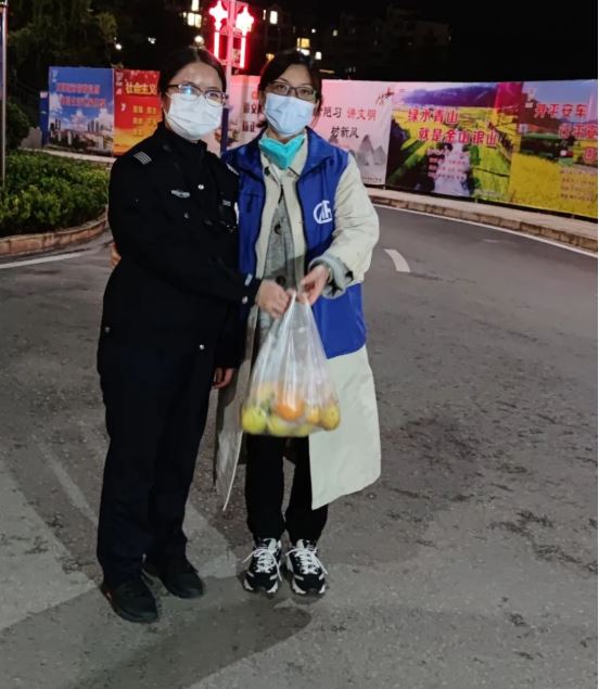 隨時(shí)可以感受到的抗疫愛(ài)心“勇動(dòng)”??偛坑须y,分公司支援。公司黨委心系卡點(diǎn)值守志愿者,面對(duì)著防疫物資緊缺的情況,火速聯(lián)系分公司為大家配備了防護(hù)服、N95口罩、手套、酒精消毒噴霧、免洗手凝膠等防疫物資,為疫情防控提供了強(qiáng)有力的防疫保障;莫名的小姐姐親自送桔子到卡點(diǎn),輕聲細(xì)語(yǔ)的一句“你們辛苦了”,聽(tīng)著暖心??!百貨店店員送來(lái)的礦泉水,喝著心里真甜!值守人員將隨身攜帶的一盒降壓藥給因?qū)嵤┓饪囟荒芡獬鲑?gòu)買(mǎi)的小伙子救急,小伙子到商店買(mǎi)了一包香煙硬要塞給我們的值守人員,還不好意思地說(shuō):“太謝謝你了”!一個(gè)非要讓收下,一個(gè)非不愿收,二人相互推辭著……幸福感爆棚啦!用香煙表示感謝,在我看來(lái)或許是吸煙人士之間在這個(gè)特殊時(shí)期最普通但卻是最真摯的表達(dá)吧!工作人員親手為卡點(diǎn)值守志愿者送來(lái)愛(ài)心工作餐;一群不知名的小伙子們積極主動(dòng)加入民兵志愿者和我們工作人員的隊(duì)伍,一起完成了近1600份政府為住戶(hù)們配送的生活物資后,悄然離開(kāi)……。