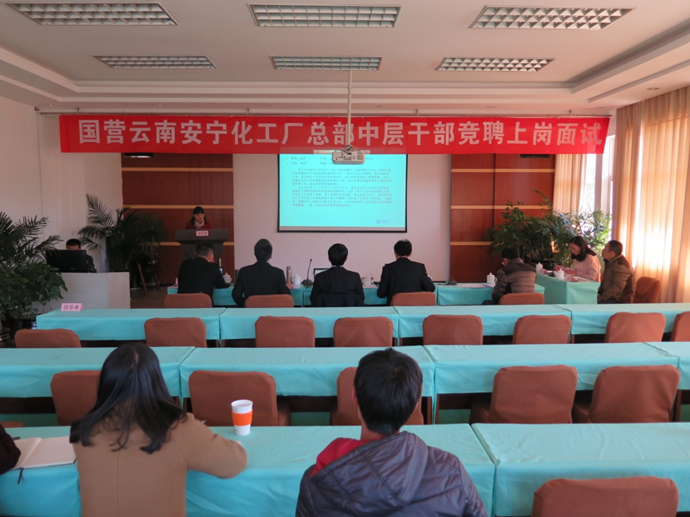 為進(jìn)一步深入開展工廠管理提升工作,建立健全科學(xué)的干部選拔、評(píng)聘機(jī)制,促進(jìn)干部培養(yǎng)、人才梯隊(duì)建設(shè),根據(jù)第十二屆三次職工代表大會(huì)上通過的《國(guó)營(yíng)云南安寧化工廠競(jìng)聘上崗實(shí)施方案》,2017年1月17日-19日,工廠完成了總部職能部門中層管理人員的競(jìng)聘工作。