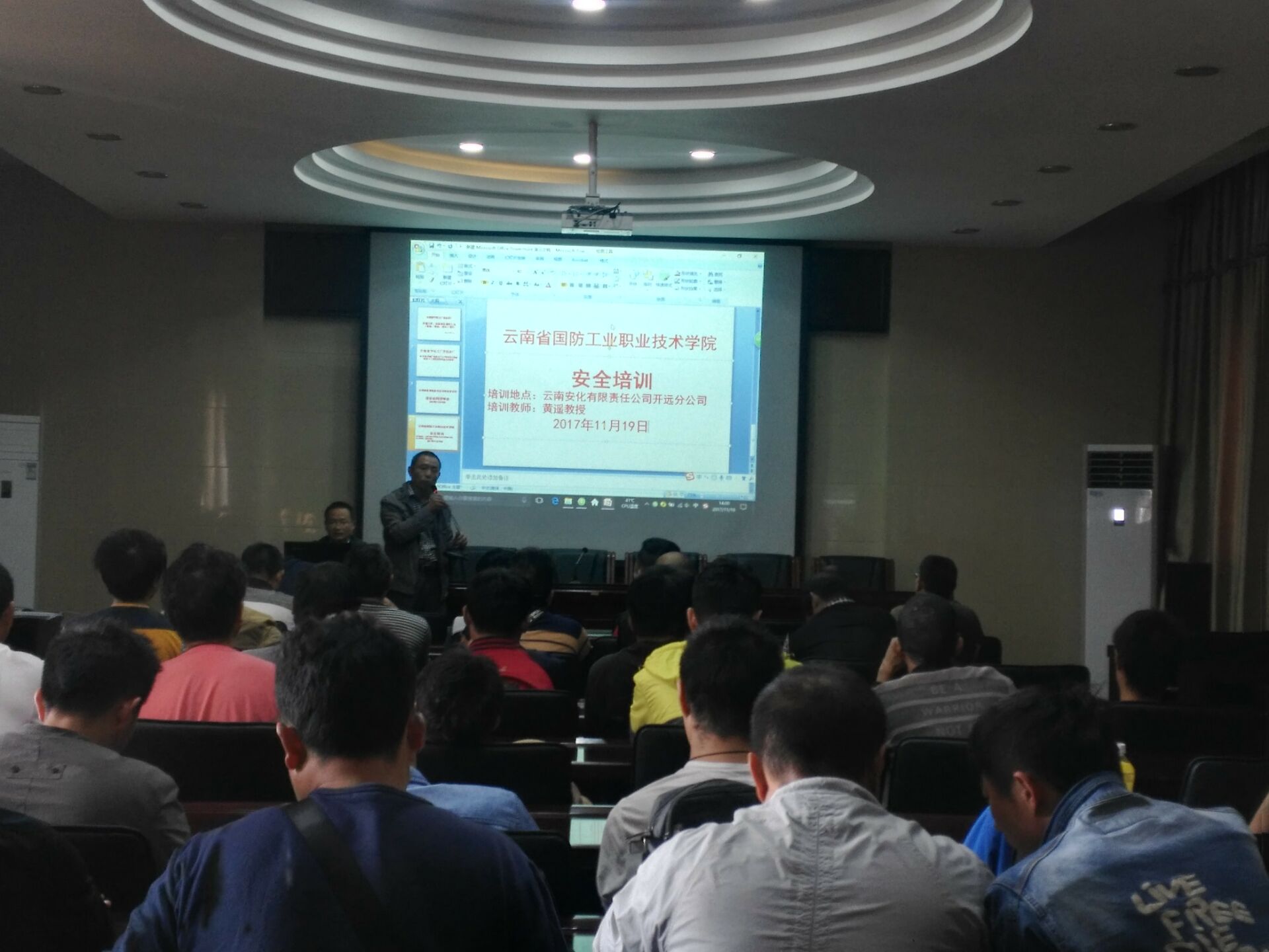 2017年11月19日,開遠分公司聘請云南開放大學(xué)化學(xué)工程學(xué)院夏建才和黃遙副院長到分公司進行安全培訓(xùn)。各科室負責(zé)人、生產(chǎn)車間職工、遠安公司職工、專兼職安全員共71人參加培訓(xùn)。